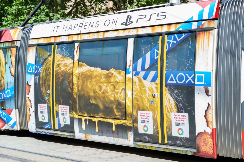 PlayStation is bursting onto the streets of Sydney with a high-impact, 3D effect Triple Carriage Wrap. Part of the overarching “It Happens on PS5” campaign, PlayStation’s Sydney Light Rail campaign maximises visibility with its attention-grabbing design. With broken windows, destroyed metal and iconic PlayStation branding, the campaign is reaching target audiences by bringing the PS5 gaming experience to life.